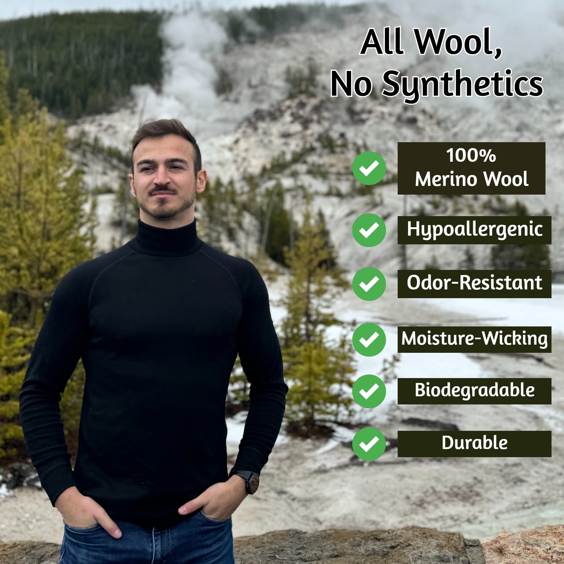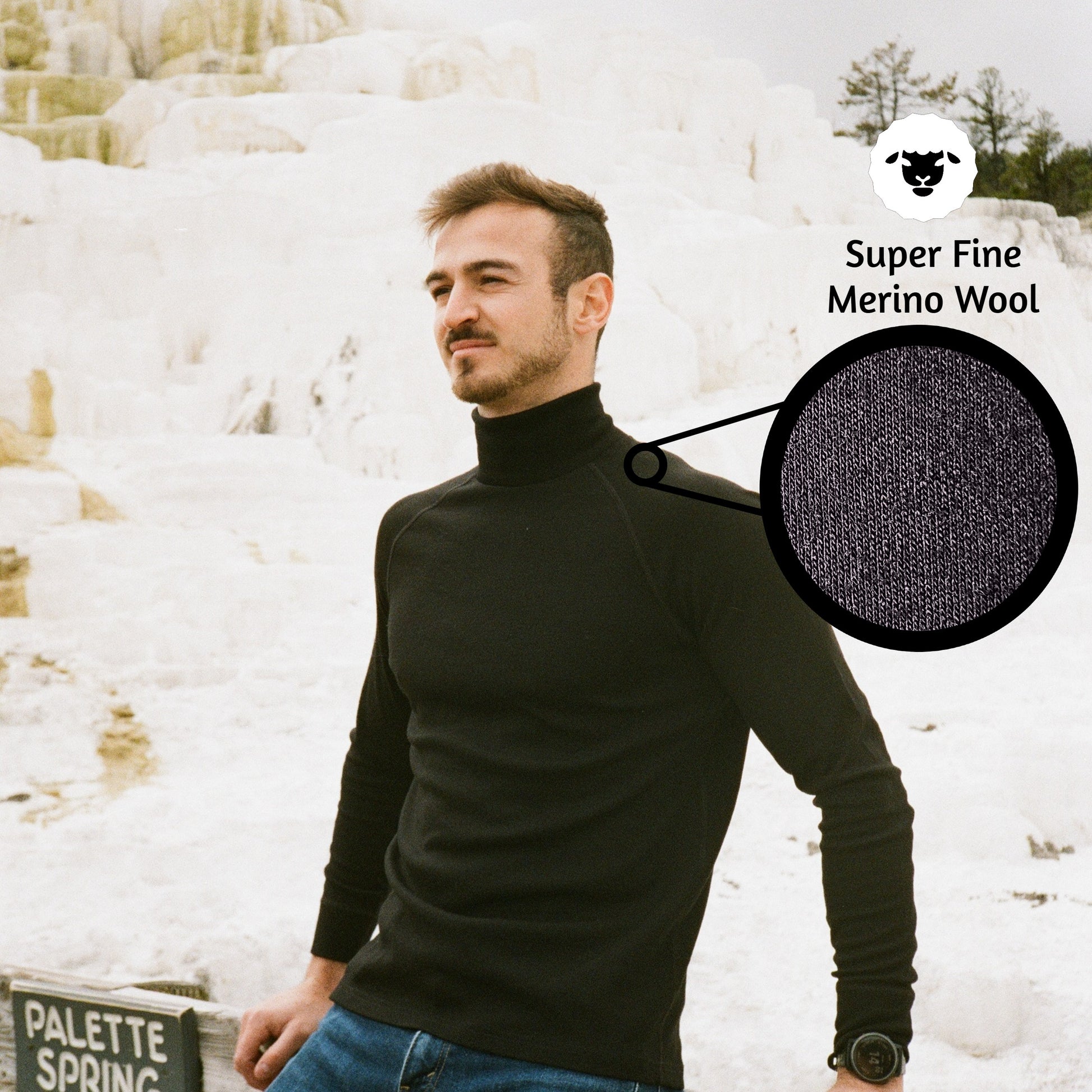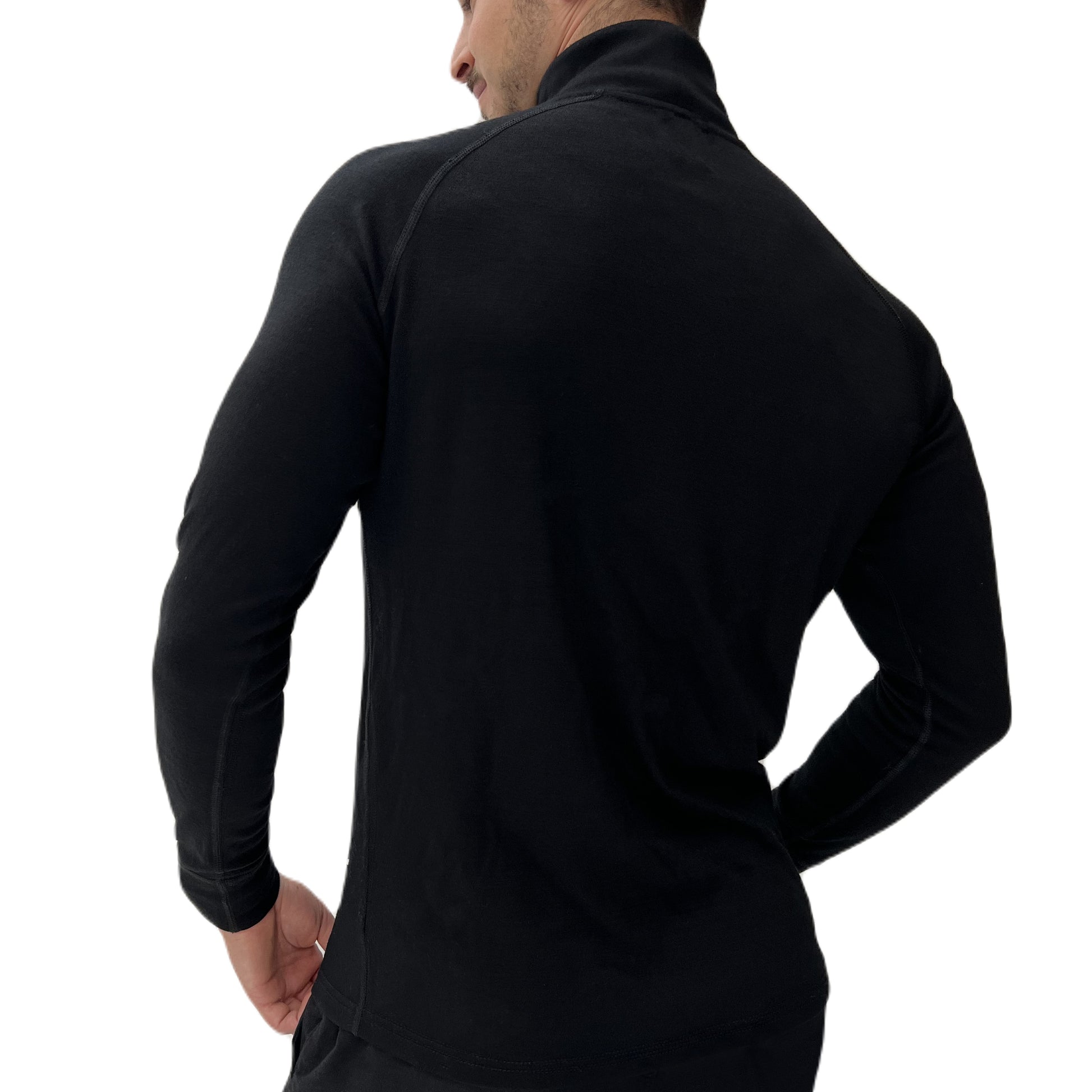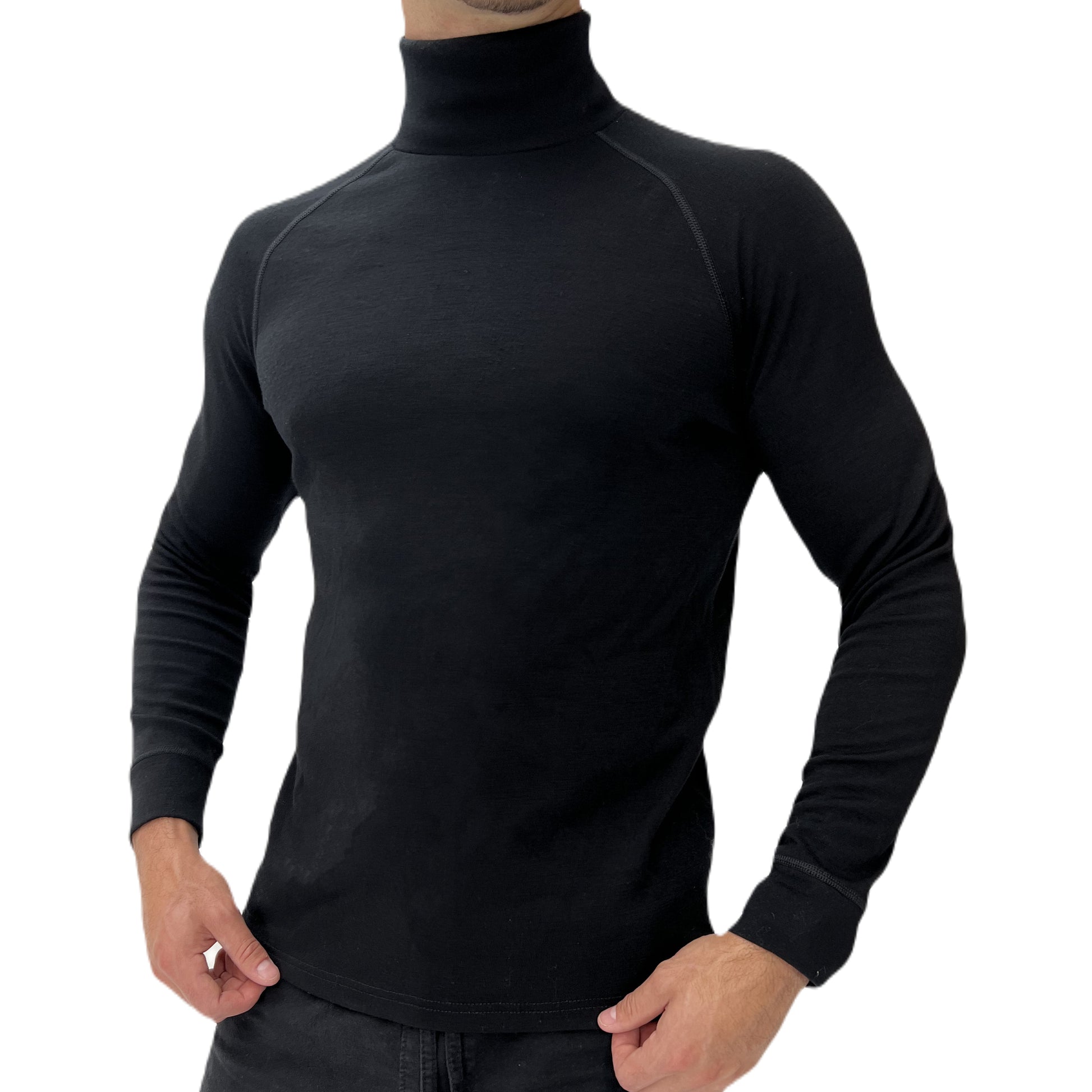 Introducing the Black 100% Merino Wool Baselayer Turtle Neck—a must-have for outdoor enthusiasts. This base layer combines the natural benefits of merino wool with a sleek design perfect for all adventures.